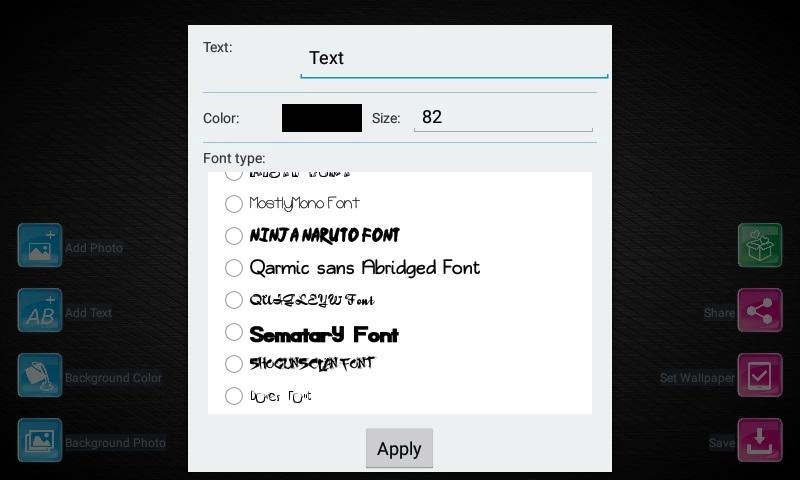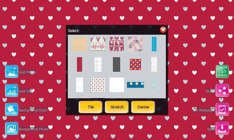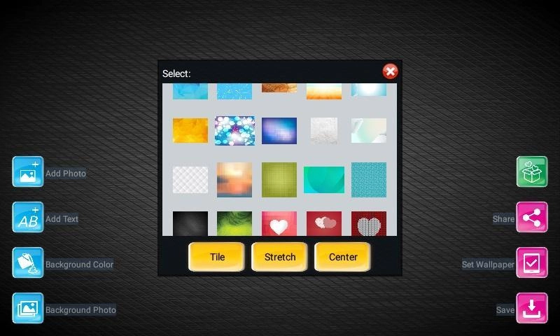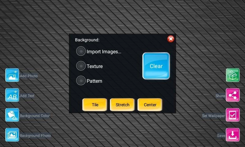 Free Background Maker<br>By this app, you can create an attractive Wallpaper.<br>Making beautiful backgrounds quick and easy!<p>Background Maker features:<br>You can add text on Background <br>You can add image on Background <br>With beautiful texture and
