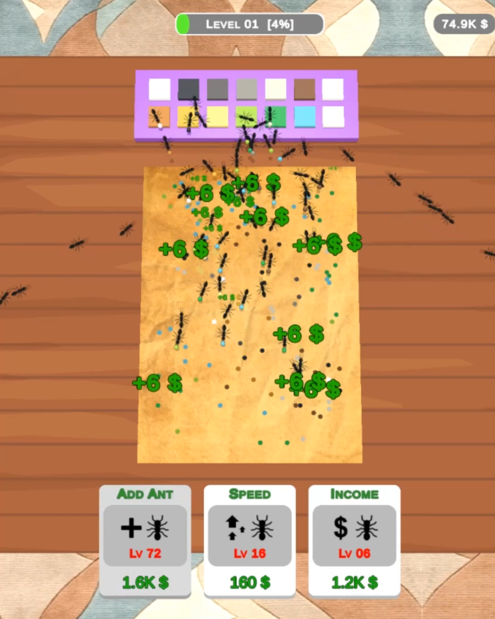 Use ants to make creative Art and Sell it to get rich!Buy more ants and expand your business.
